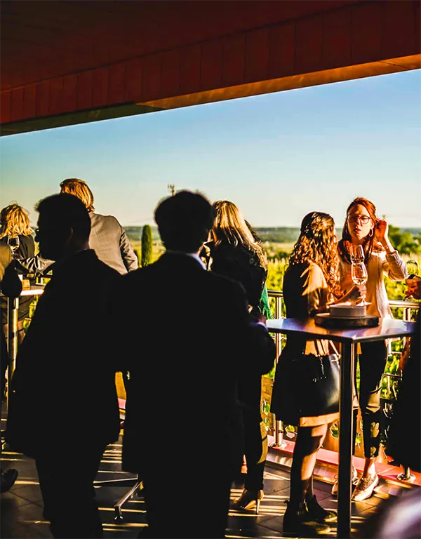 Au cœur des coteaux de Saint-Émilion, la salle de réception panoramique du Château La Croizille offre un cadre lumineux et contemporain, ouvert sur les vignes classées au patrimoine mondial de l’UNESCO. Avec ses 100 m² baignés de lumière et sa terrasse attenante dominant le paysage, c’est le lieu idéal pour un déjeuner surplombant le vignoble, un cocktail au coucher du soleil ou une réunion qui allie travail et plaisir.